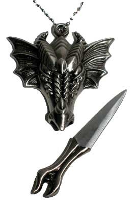 Dragon Head Necklace athame Excluding Tax: $1.12 $14.95 Add To Cart Buy Now Call Us WhatsApp Description A hidden athame blade within a fierce dragon head. Wear it around your neck and keep the ferocity of a dragon close to your heart. With chain. (Cannot ship to MA or CA) 3 1/4" - 1 1/2" blade. Delivery Orders are packed and shipped same day if the order is placed before 3:00p.m. Central Standard Time. All orders are shipped via standard delivery. If you require expedited delivery, please contact us.