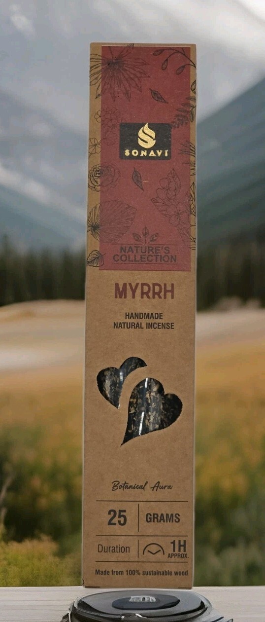 1 Box of Sonavi Premium Handcrafted Myrrh Incense Sticks. 25gm per box.