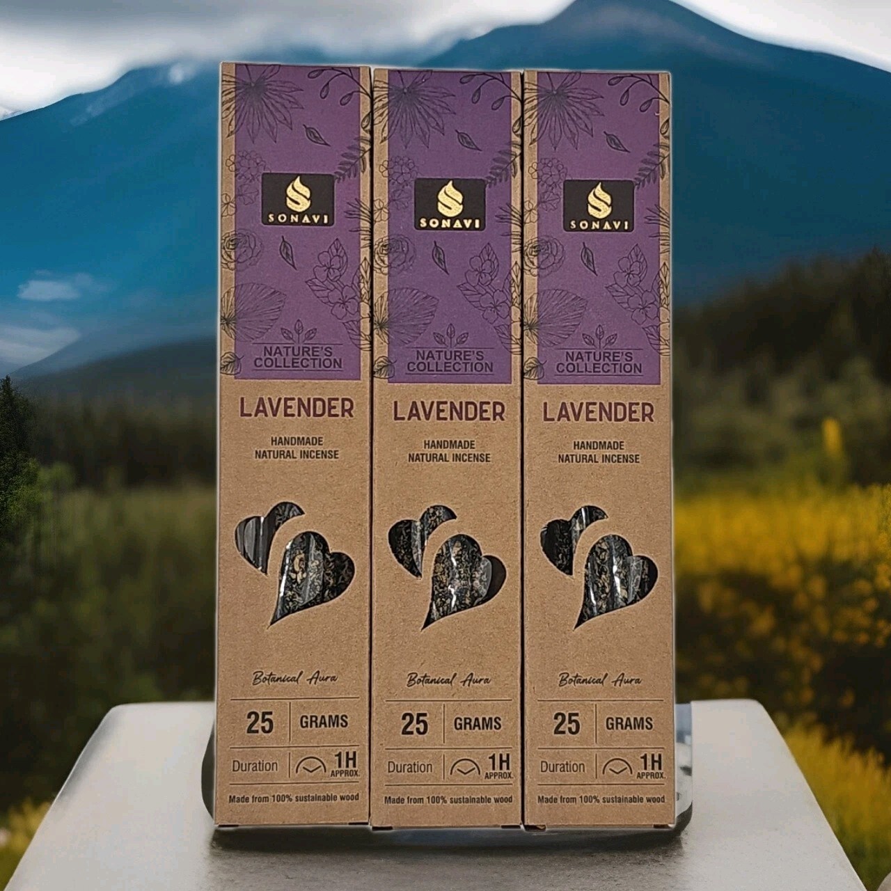 3 BOXES OF SONAVI LAVENDER HANDMADE INCENSE, 25 GRAMS PER BOX