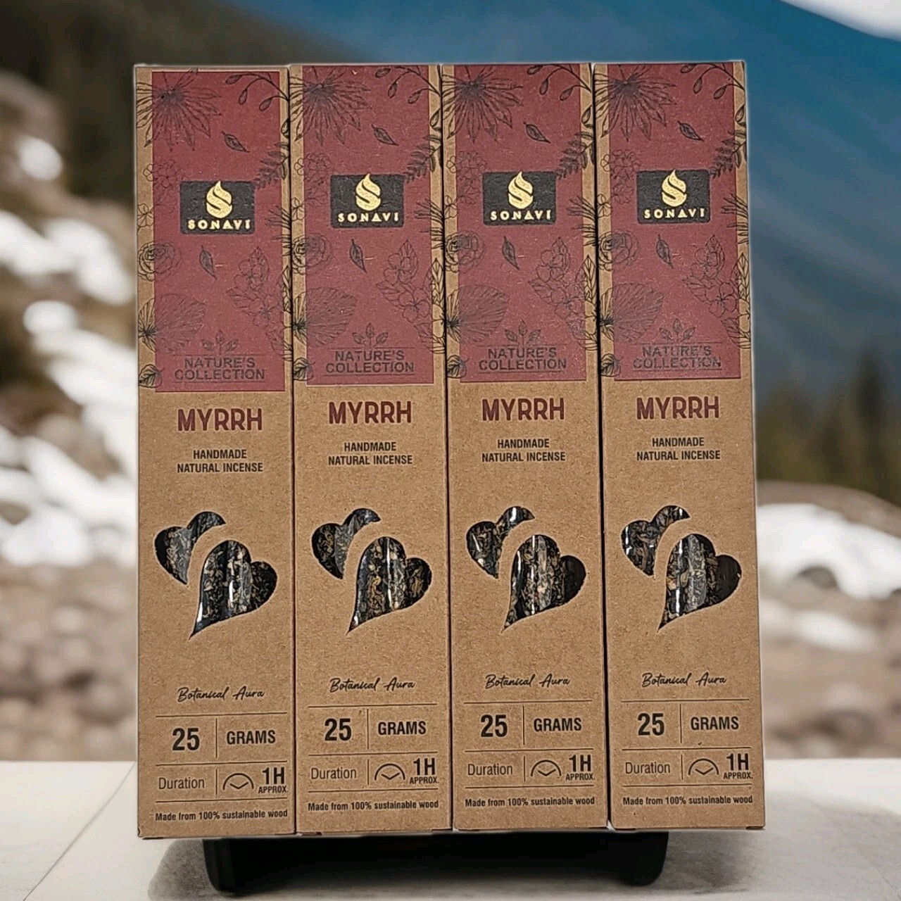 4 Boxes of Sonavi Premium Handcrafted Myrrh Incense Sticks. 25gm per box.