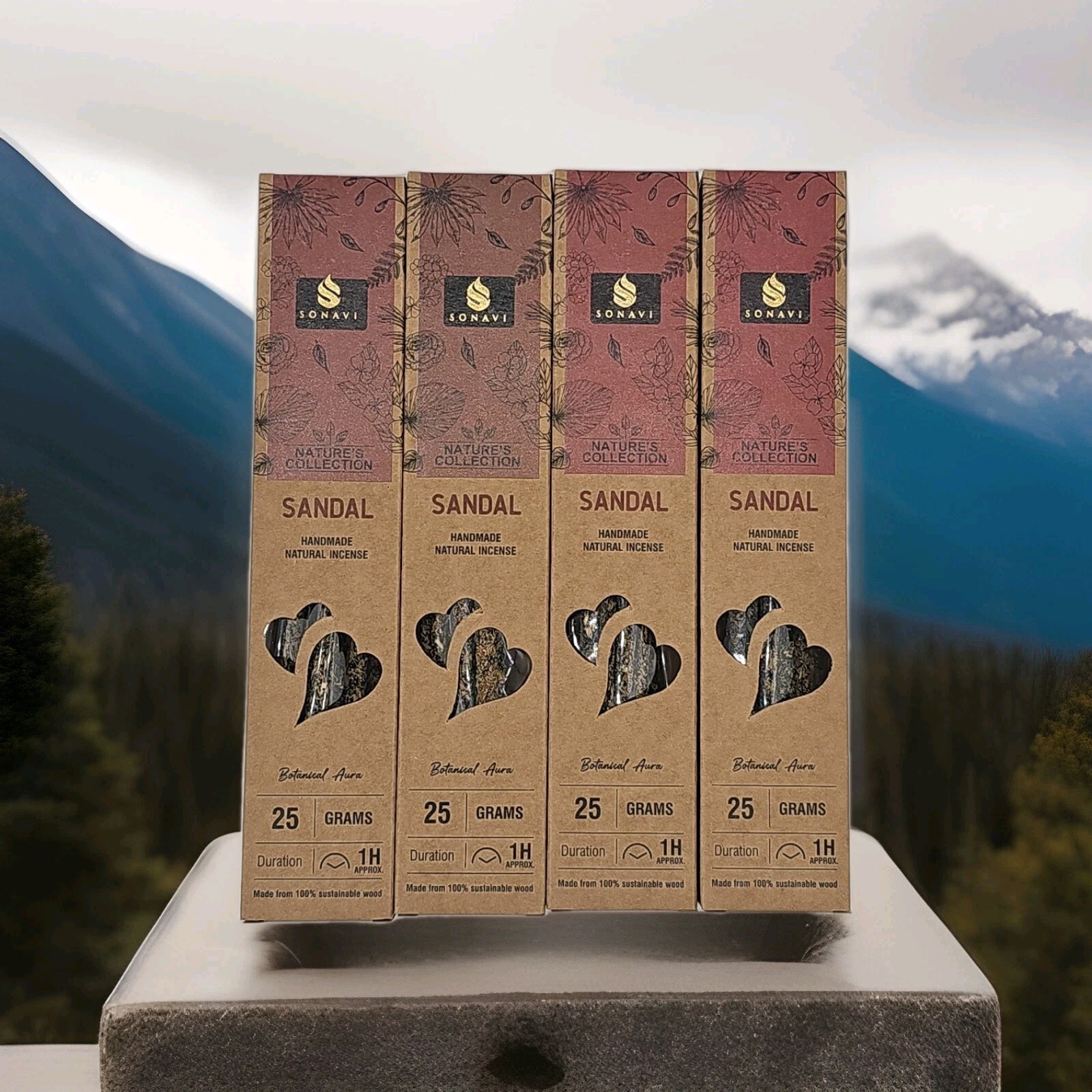 4 Boxes of Sonavi Premium Handcrafted Sandal Incense Sticks. 25gm per box.